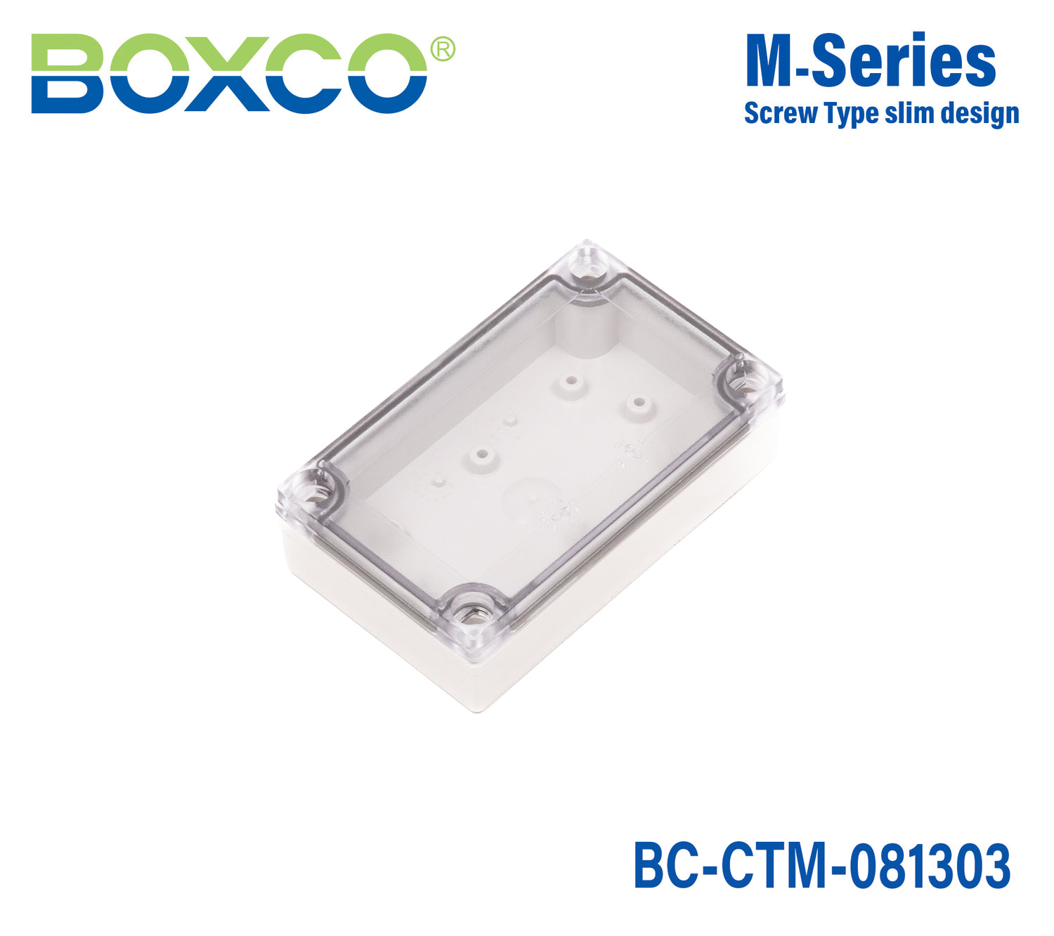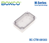 For Boxco M-Series, Ultraviolet Stabilizer is added to protect the enclosures for outdoor usage. Few colour changes will be noticed even after a long time of use. Anti-static material is used to protect sensitive electronic instruments from static electricity. It is made of high impact resistant material which is very strong against external impact and also prevents breakage during hole and press processing. Special spec can be added besides standard specification. We can supply optimized products with the spec and material you choose.