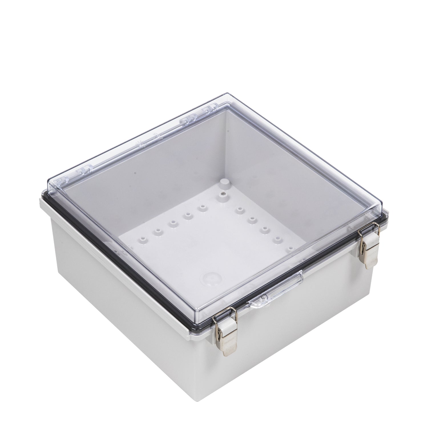 Boxco P-Series 13.78 x 13.78 x 7.09 Inches(350 x 350 x 180mm) Plastic Enclosure, IP67, IK08, ABS, Transparent Cover, Molded Hinge and Latch Type