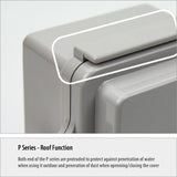 - Roof Protection – Both ends of the P series are protruded to protect against penetration of water when using it outdoor and penetration of dust when opening/closing the cover