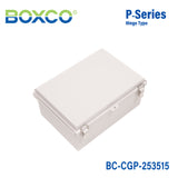 For Boxco P-Series,Ultraviolet Stabilizer is added to protect the enclosures for outdoor usage. Few colour changes will be noticed even after a long time of use. Anti-static material is used to protect sensitive electronic instruments from static electricity. It is made of high impact resistant material which is very strong against external impact and also prevents breakage during hole and press processing. Special spec can be added besides standard specification. We can supply optimized products with the spec and material you choose.
