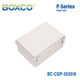 For Boxco P-Series,Ultraviolet Stabilizer is added to protect the enclosures for outdoor usage. Few colour changes will be noticed even after a long time of use. Anti-static material is used to protect sensitive electronic instruments from static electricity. It is made of high impact resistant material which is very strong against external impact and also prevents breakage during hole and press processing. Special spec can be added besides standard specification. We can supply optimized products with the spec and material you choose.