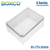 For Boxco S-Series, Ultraviolet Stabilizer is added to protect the enclosures for outdoor usage. Few colour changes will be noticed even after a long time of use. Anti-static material is used to protect sensitive electronic instruments from static electricity. It is made of high impact resistant material which is very strong against external impact and also prevents breakage during hole and press processing. Special spec can be added besides standard specification. We can supply optimized products with the spec and material you choose.