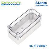 For Boxco S-Series, Ultraviolet Stabilizer is added to protect the enclosures for outdoor usage. Few colour changes will be noticed even after a long time of use. Anti-static material is used to protect sensitive electronic instruments from static electricity. It is made of high impact resistant material which is very strong against external impact and also prevents breakage during hole and press processing. Special spec can be added besides standard specification. We can supply optimized products with the spec and material you choose.