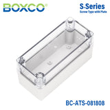 For Boxco S-Series, Ultraviolet Stabilizer is added to protect the enclosures for outdoor usage. Few colour changes will be noticed even after a long time of use. Anti-static material is used to protect sensitive electronic instruments from static electricity. It is made of high impact resistant material which is very strong against external impact and also prevents breakage during hole and press processing. Special spec can be added besides standard specification. We can supply optimized products with the spec and material you choose.