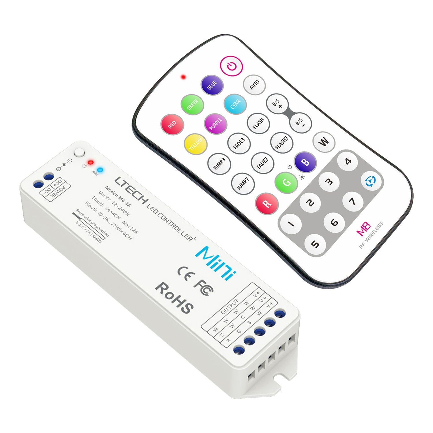 M series LED controller is compatible with 8 kinds remotes of different function (patent technology) which means using one receiver could experience single color/CT dimming, RGB/RGBW adjustment to meet customers' different lighting requirements. With the RF remote, speed/brightness adjustment.customise color and lighting changing modes selection could all be achieved