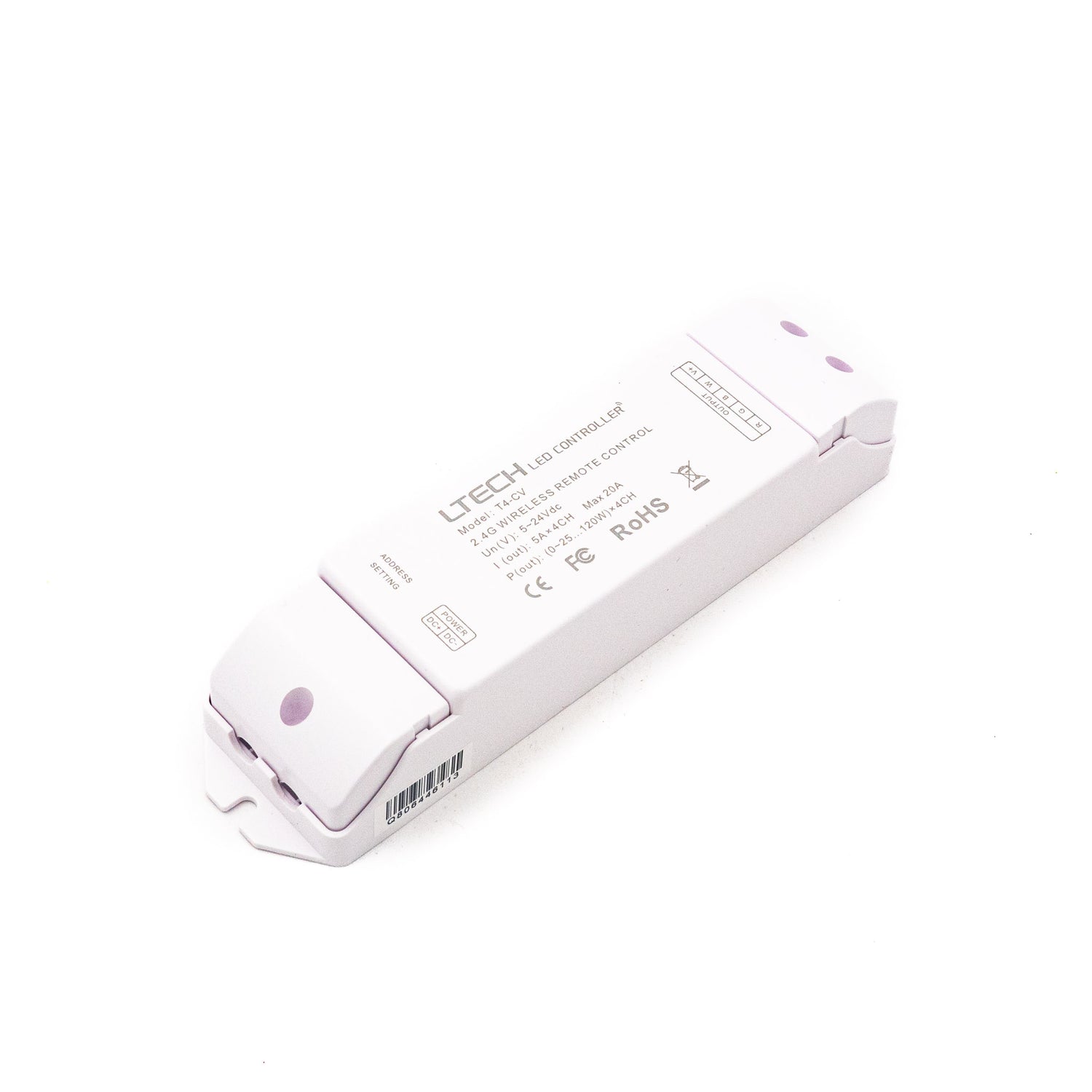 T4 is the 2.4GHZ RF wireless synchronization/zone RGBW controller which adopts LTECH four global initiate technology(two invention patents, two patents of utility), which has the powerful function of most RF remote control can not realize, especially receiver between receiver without any cables can achieve dynamic effect synchronously, bring great convenience for users to install; T4 adopts the function of T3 / T3M/T3X RGB remote control for the past two years by customers like three functions in one, but use more simple.
