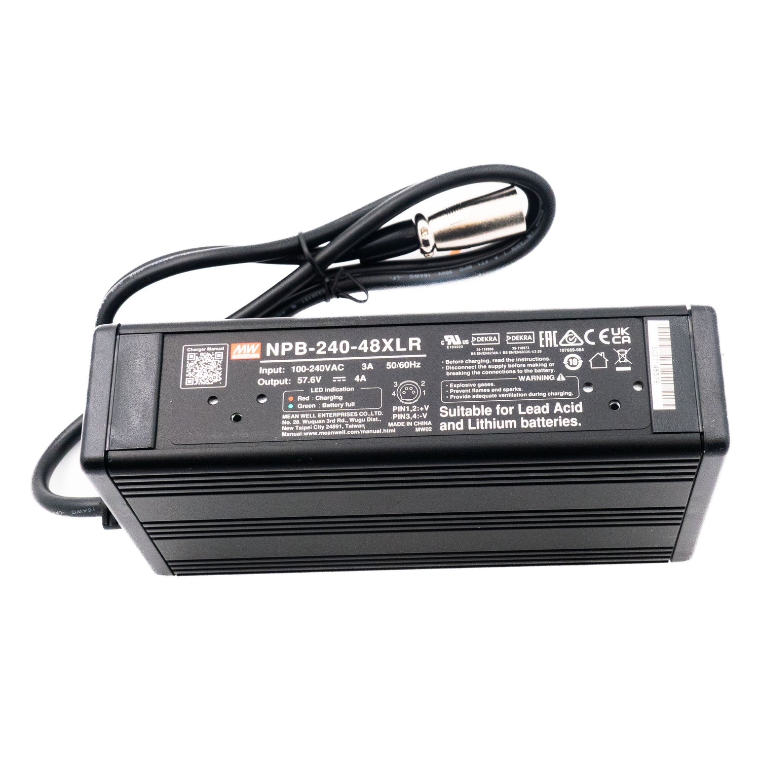 AC-DC Single output battery charger with PFC; 2 or 3 stage charging; Universal AC input; Output 57.6Vdc at 4A with 3 pin power pin