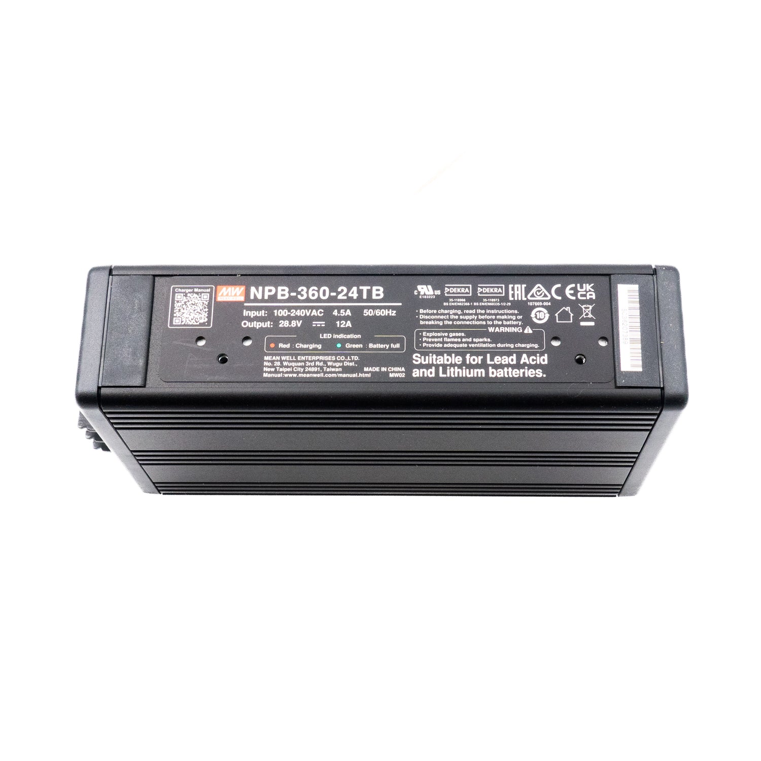 AC-DC Single output battery charger with PFC; 2 or 3 stage charging; Universal AC input; Output 28.8Vdc at 12A with terminal block